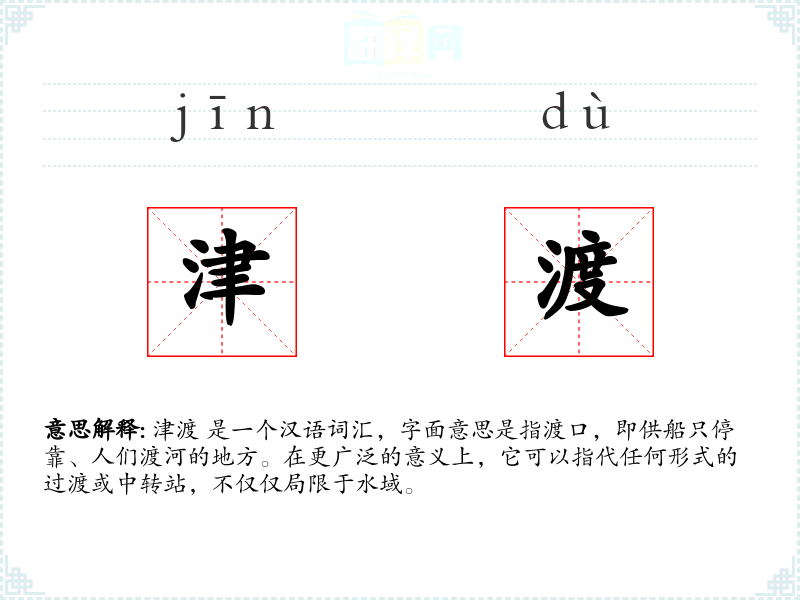 - 专业领域:在交通规划或历史地理学中,“津渡”可能被用来指代古代的交通节点。