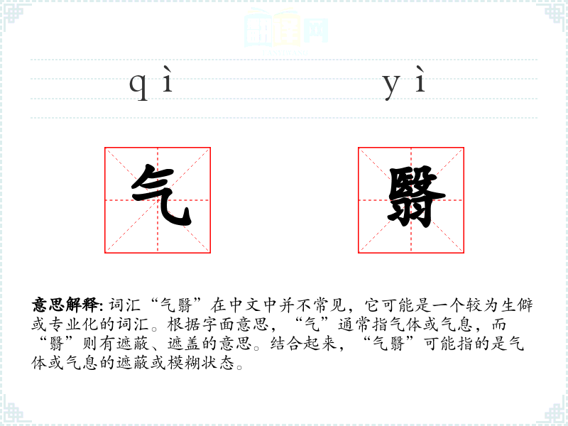 - 理解:“气翳”是一个描述气体或气息遮蔽状态的词汇,常用于文学和专业领域。