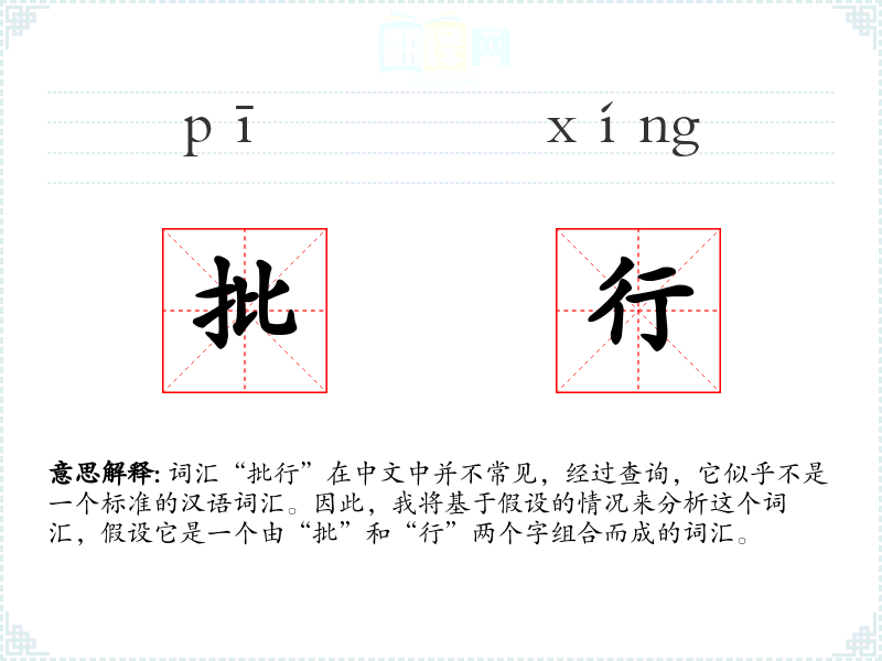词汇“批行”在中文中并不常见,经过查询,它似乎不是一个标准的汉语词汇。因此,我将基于假设的情况来分析这个词汇,假设它是一个由“批”和“行”两个字组合而成的词汇。