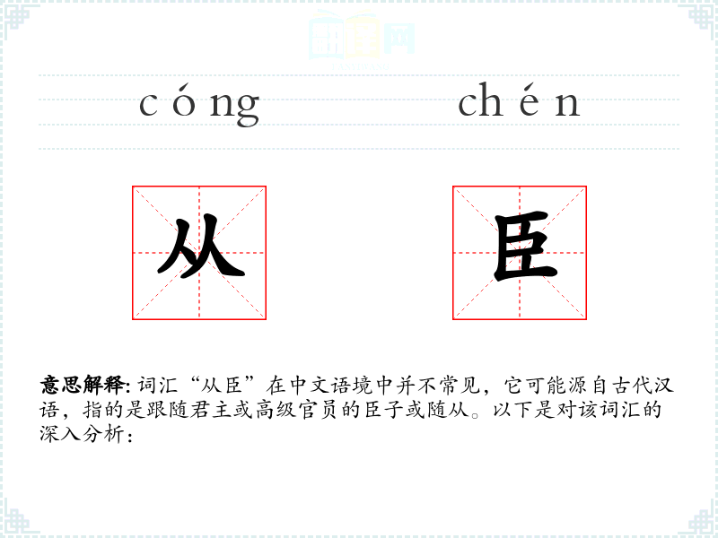 通过以上分析,我们可以看到“从臣”这一词汇在语言学*和表达中的重要性,尤其是在探讨古代历史和文化时。