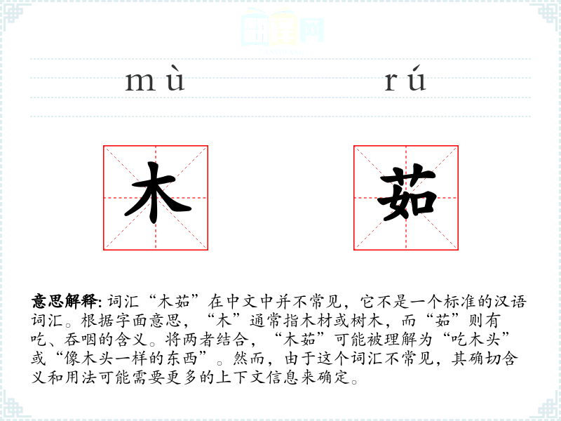 由于“木茹”不是一个常用词汇,它在不同语言或文化中的对应词汇及其使用情况不详。