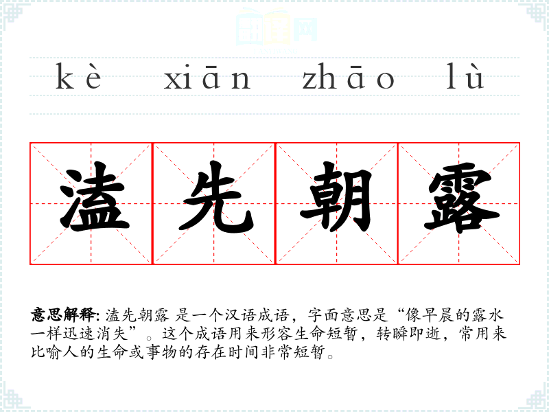 这个成语带有一种淡淡的哀愁和哲思,让人联想到清晨的露水,美丽而短暂,提醒人们珍惜时间和生命。