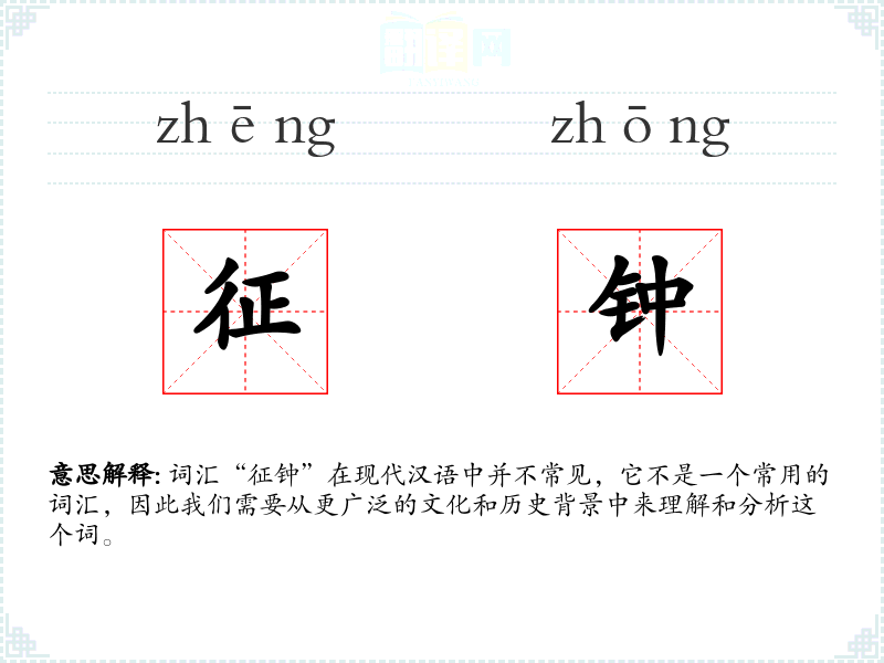词汇“征钟”在现代汉语中并不常见,它不是一个常用的词汇,因此我们需要从更广泛的文化和历史背景中来理解和分析这个词。