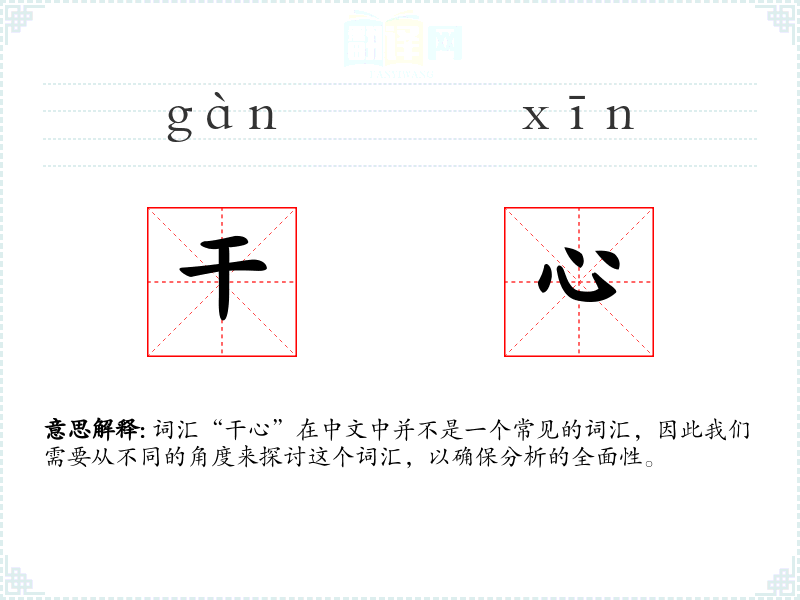 词汇“干心”在中文中并不是一个常见的词汇,因此我们需要从不同的角度来探讨这个词汇,以确保分析的全面性。