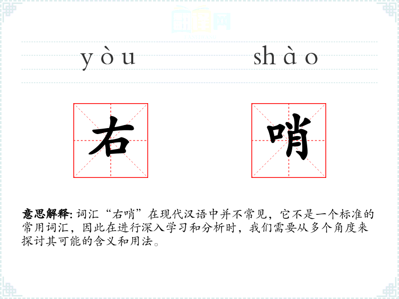 词汇“右哨”在现代汉语中并不常见,它不是一个标准的常用词汇,因此在进行深入学习和分析时,我们需要从多个角度来探讨其可能的含义和用法。