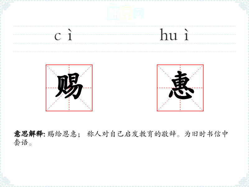 赐给恩惠; 称人对自己启发教育的敬辞。为旧时书信中套语。