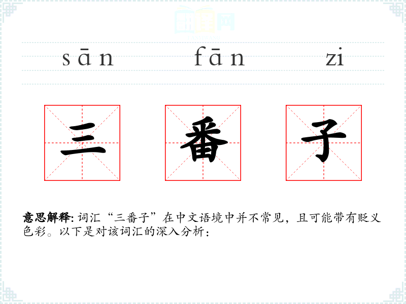 词汇“三番子”在中文语境中并不常见,且可能带有贬义色彩。以下是对该词汇的深入分析: