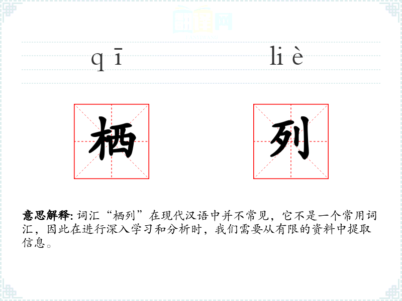 词汇“栖列”在现代汉语中并不常见,它不是一个常用词汇,因此在进行深入学习和分析时,我们需要从有限的资料中提取信息。