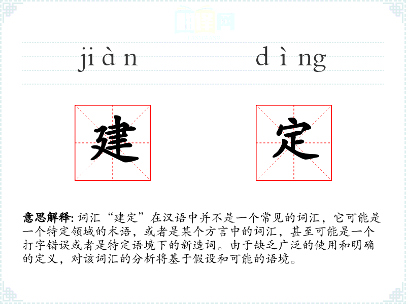 如果“建定”是一个特定文化或社会背景下的词汇,它可能反映了该文化中对建立和确定事物的重视。