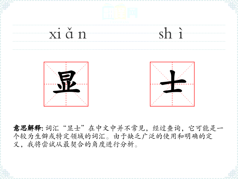 词汇“显士”在中文中并不常见,经过查询,它可能是一个较为生僻或特定领域的词汇。由于缺乏广泛的使用和明确的定义,我将尝试从最契合的角度进行分析。