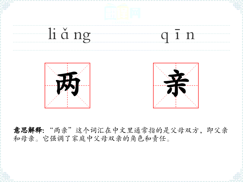 - 文学:在文学作品中,“两亲”可能被用来强调家庭的重要性和父母的爱。