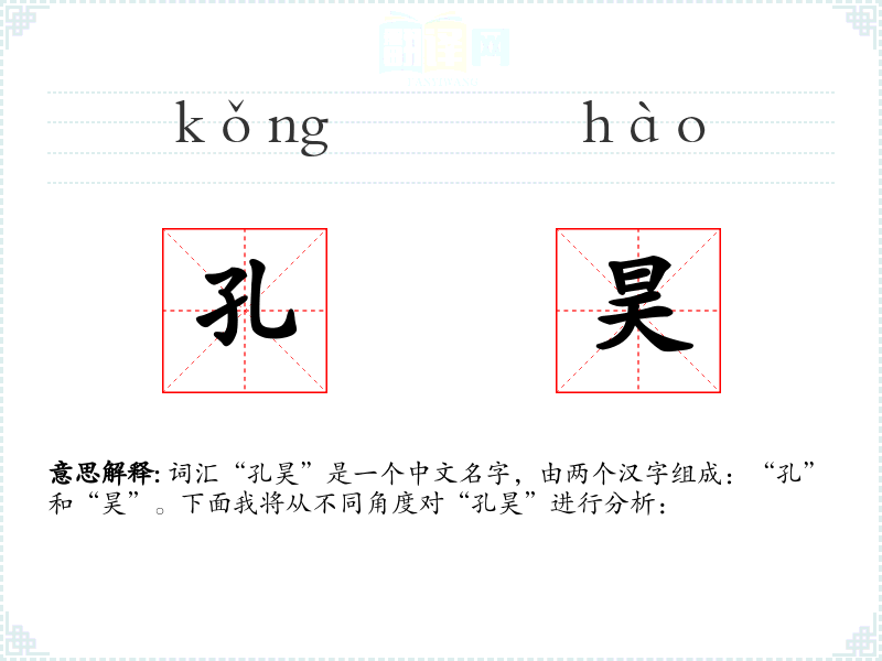 - 同义词:对于人名“孔昊”,没有直接的同义词,因为它是一个独特的组合。