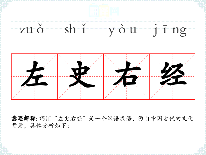 词汇“左史右经”是一个汉语成语,源自**古代的文化背景,具体分析如下: