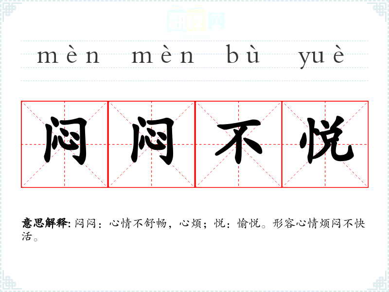 闷闷:心情不舒畅,心烦;悦:愉悦。形容心情烦闷不快活。