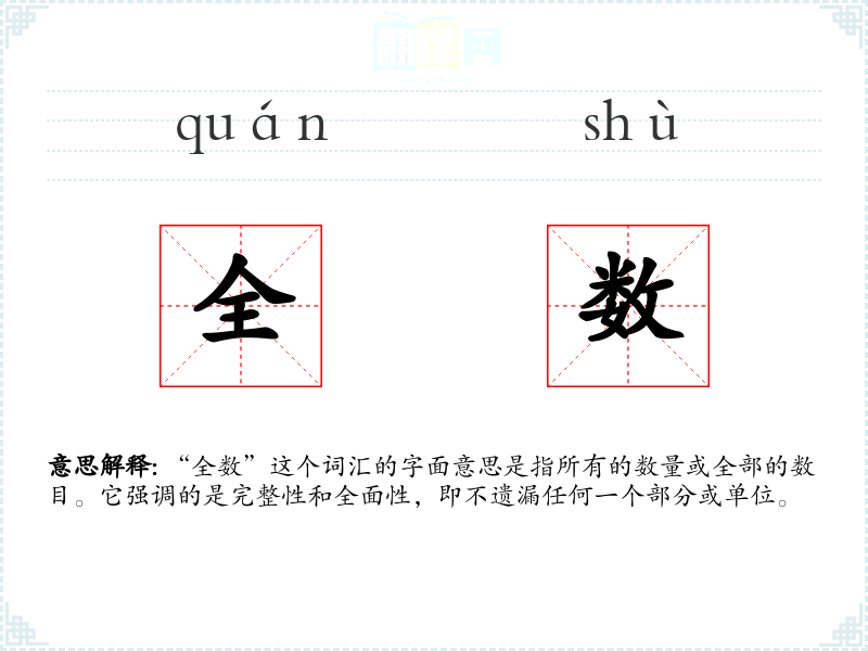 "全数"的意思解释、全数是什么意思由翻译网汉语词典查词提供。