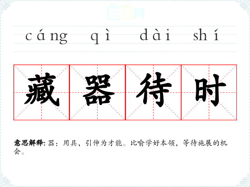 器:用具,引伸为才能。比喻学好本领,等待施展的机会。