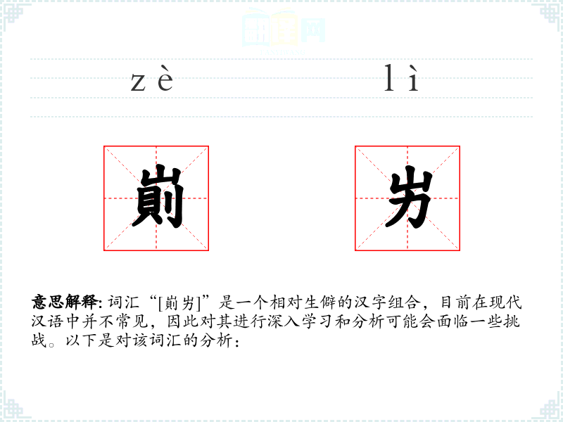 词汇“[崱屴]”是一个相对生僻的汉字组合,目前在现代汉语中并不常见,因此对其进行深入学习和分析可能会面临一些挑战。以下是对该词汇的分析: