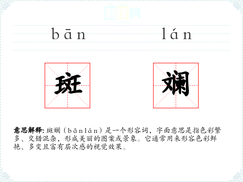 "斑斓"的意思解释、斑斓是什么意思由翻译网汉语词典查词提供。