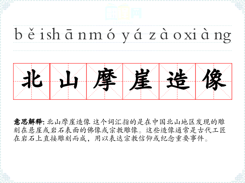 "北山摩崖造像"的意思解释、北山摩崖造像是什么意思由翻译网汉语词典查词提供。