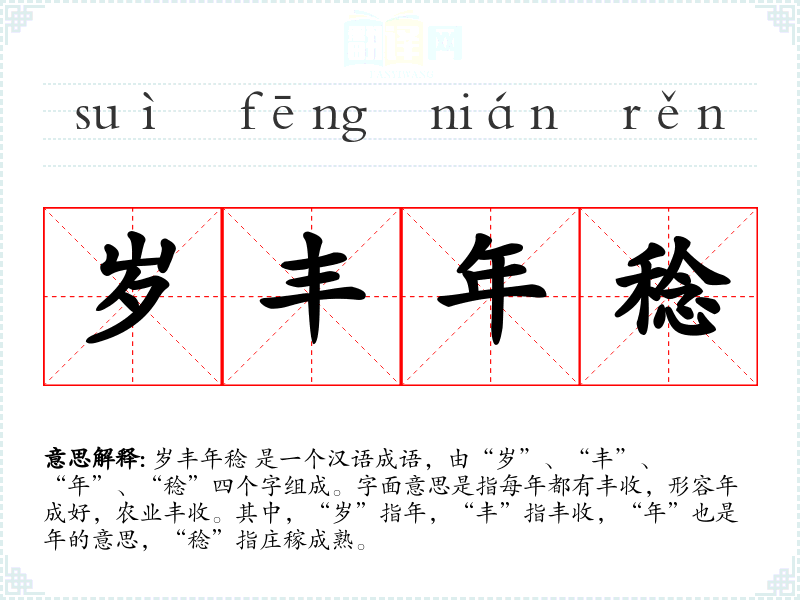 - 同义词:年年有余、五谷丰登、丰年稔岁