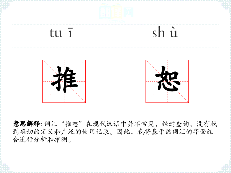 假设“推恕”是一个词汇,它可能给人带来一种理性、平和的情感反应,联想到通过理性思考来解决问题和冲突。