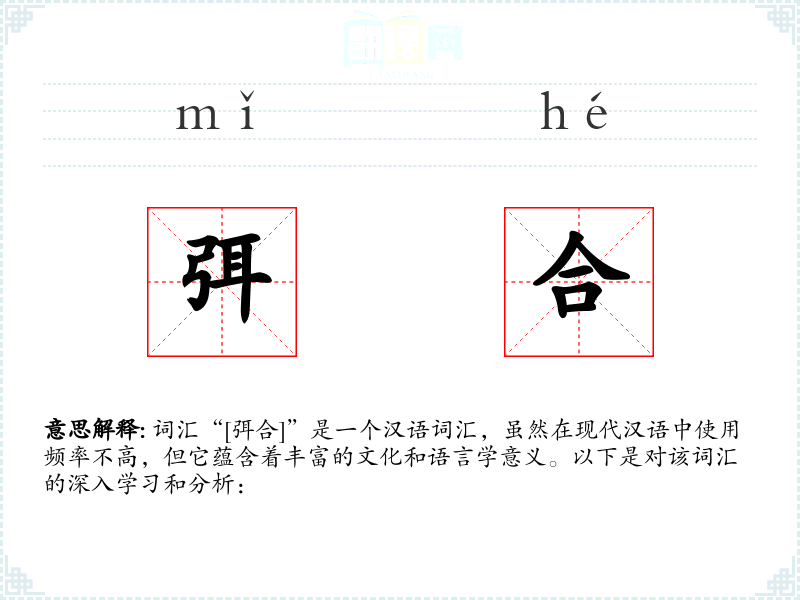 词汇“[弭合]”是一个汉语词汇,虽然在现代汉语中使用频率不高,但它蕴含着丰富的文化和语言学意义。以下是对该词汇的深入学*和分析: