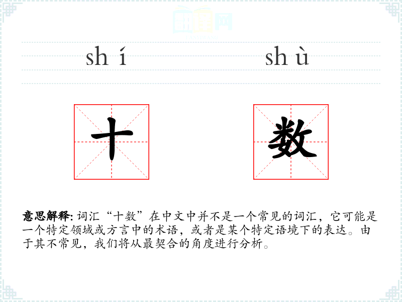 由于“十数”不是一个标准词汇,它在不同语境下的使用可能非常有限。在某些方言或特定领域中,它可能被用来表示一个具体的数量范围。