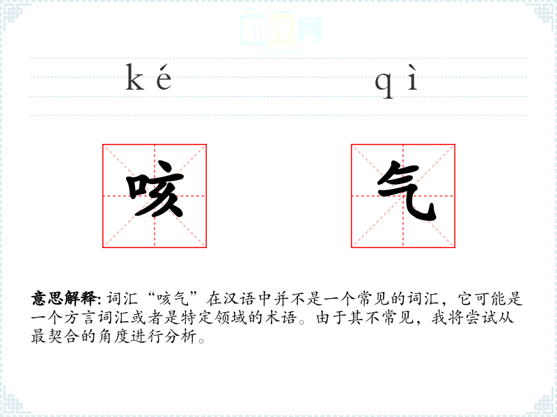 词汇“咳气”在汉语中并不是一个常见的词汇,它可能是一个方言词汇或者是特定领域的术语。由于其不常见,我将尝试从最契合的角度进行分析。