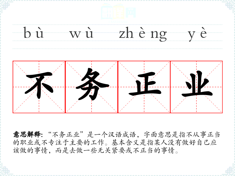 - bù wù zhèng yè不务正业