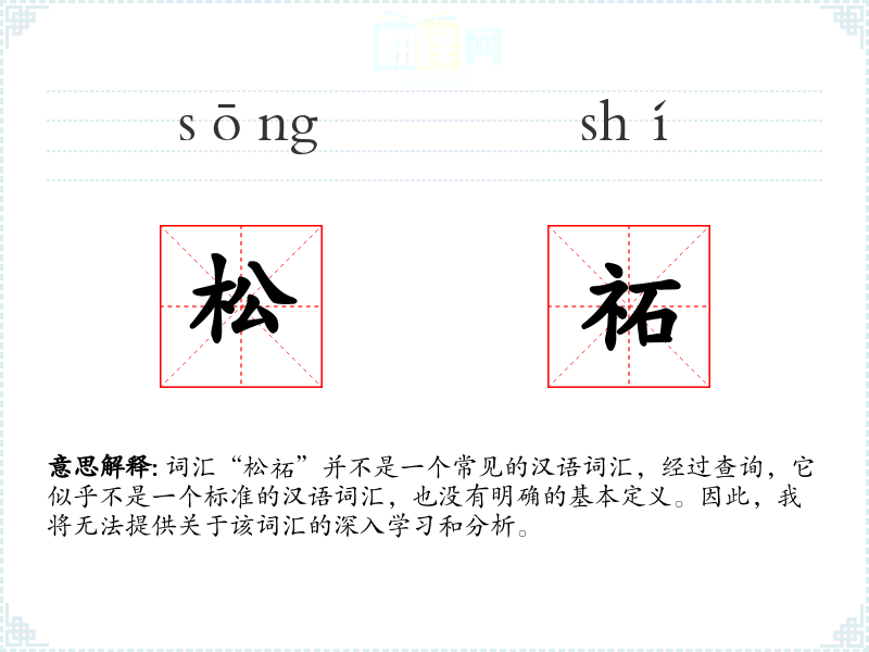 词汇“松祏”并不是一个常见的汉语词汇,经过查询,它似乎不是一个标准的汉语词汇,也没有明确的基本定义。因此,我将无法提供关于该词汇的深入学习和分析。