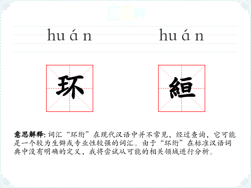 词汇“环绗”在现代汉语中并不常见,经过查询,它可能是一个较为生僻或专业性较强的词汇。由于“环绗”在标准汉语词典中没有明确的定义,我将尝试从可能的相关领域进行分析。