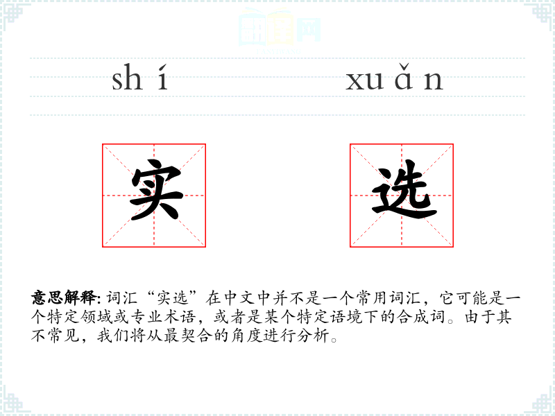 词汇“实选”在中文中并不是一个常用词汇,它可能是一个特定领域或专业术语,或者是某个特定语境下的合成词。由于其不常见,我们将从最契合的角度进行分析。