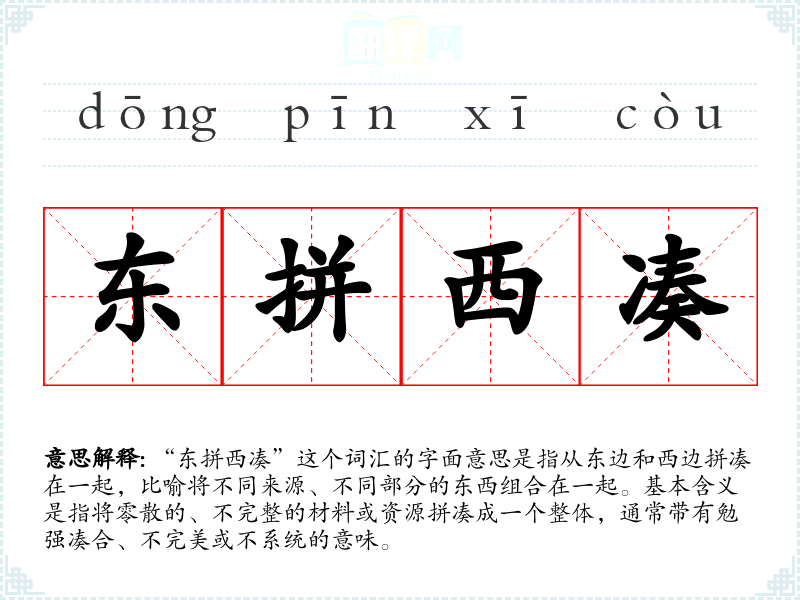 - dōng pīn xī còu东拼西凑