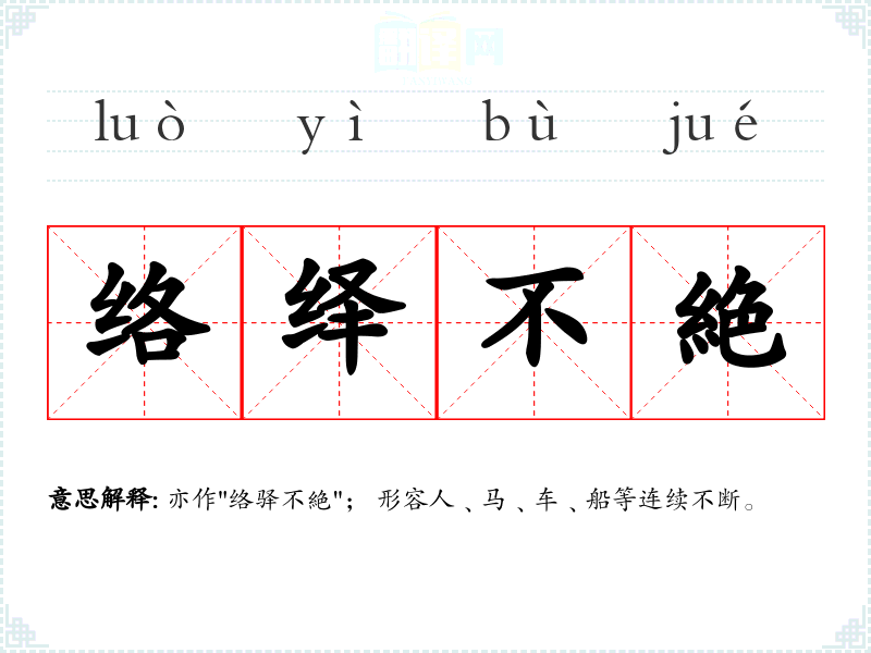 亦作"络驿不絶"; 形容人﹑马﹑车﹑船等连续不断。