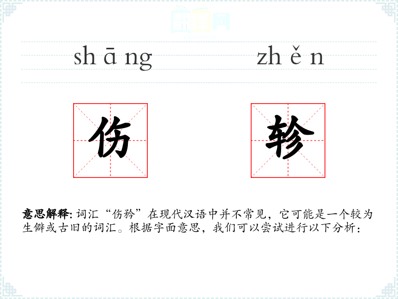 词汇“伤矜”在现代汉语中并不常见,它可能是一个较为生僻或古旧的词汇。根据字面意思,我们可以尝试进行以下分析: