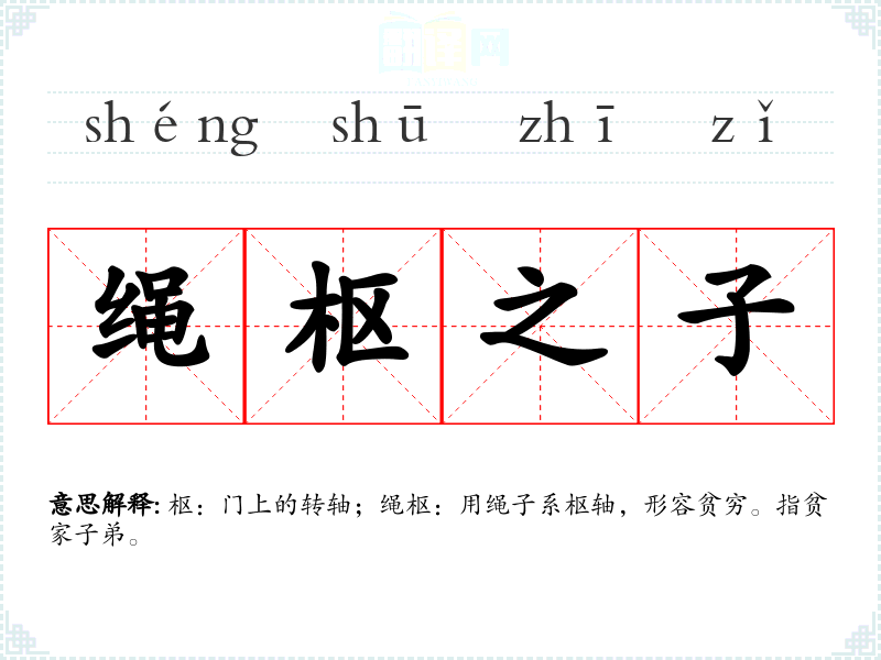 枢:门上的转轴;绳枢:用绳子系枢轴,形容贫穷。指贫家子弟。