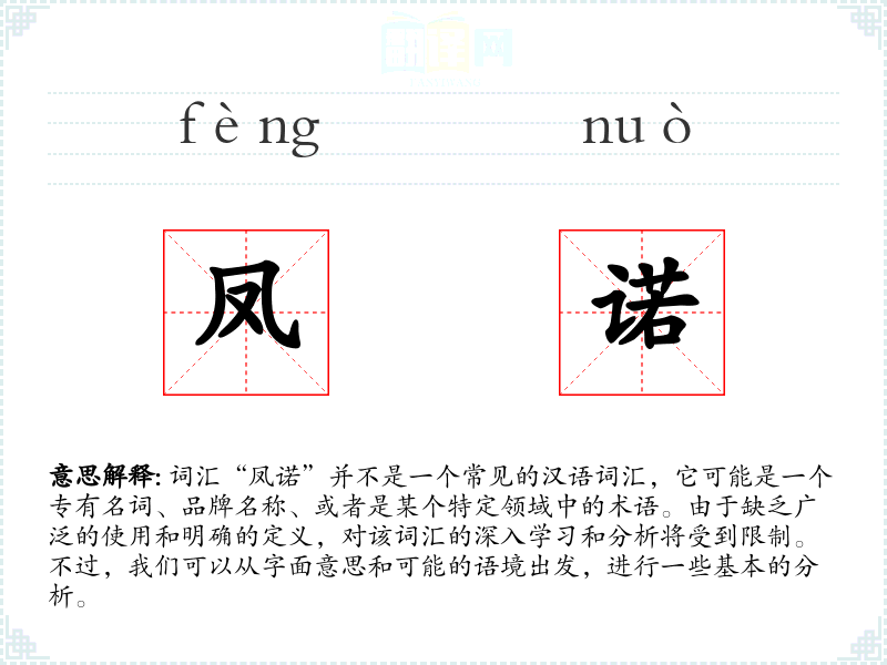 由于“凤诺”不是一个标准词汇,它的使用可能局限于特定语境,如文学作品中的虚构名称、商业品牌、或者某个社群的内部用语。