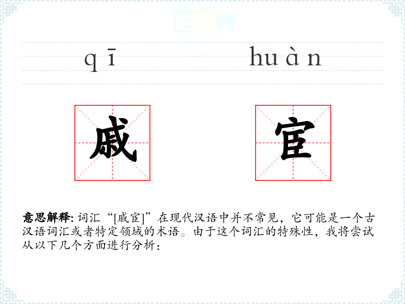 词汇“[戚宦]”在现代汉语中并不常见,它可能是一个古汉语词汇或者特定领域的术语。由于这个词汇的特殊性,我将尝试从以下几个方面进行分析: