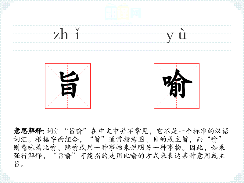 - 由于“旨喻”不是一个常用词汇,其词源和演变不详。