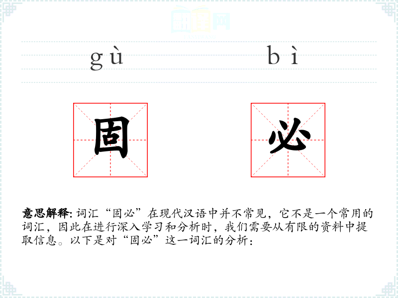 词汇“固必”在现代汉语中并不常见,它不是一个常用的词汇,因此在进行深入学习和分析时,我们需要从有限的资料中提取信息。以下是对“固必”这一词汇的分析: