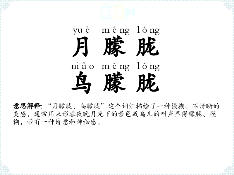 - yuè méng lóng,niǎo méng lóng月朦胧,鸟朦胧