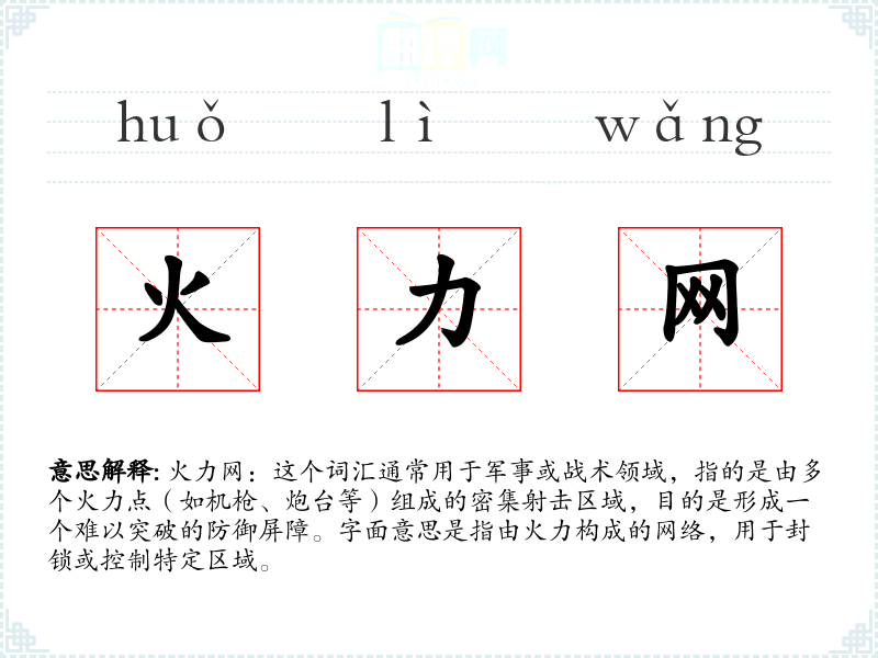 "火力网"的意思解释、火力网是什么意思由翻译网汉语词典查词提供。