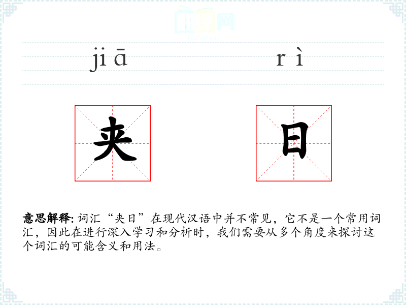 词汇“夹日”在现代汉语中并不常见,它不是一个常用词汇,因此在进行深入学习和分析时,我们需要从多个角度来探讨这个词汇的可能含义和用法。