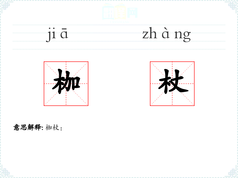 - 词源:枷杖一词源自古代汉语,枷和杖分别指两种不同的刑具。