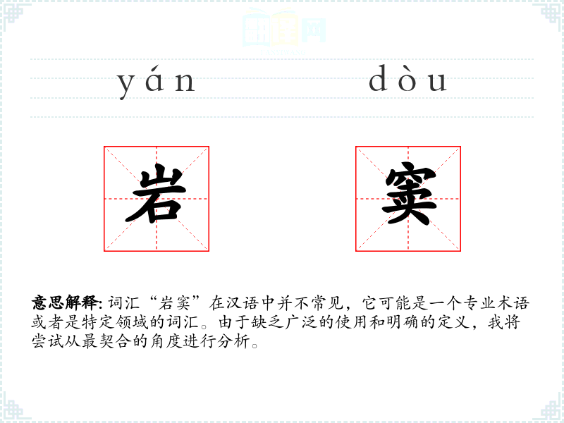 词汇“岩窦”在汉语中并不常见,它可能是一个专业术语或者是特定领域的词汇。由于缺乏广泛的使用和明确的定义,我将尝试从最契合的角度进行分析。