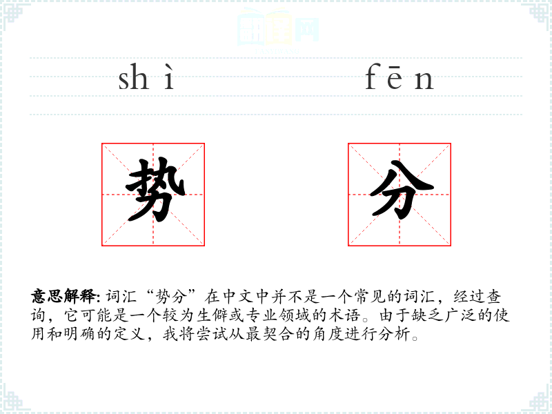 词汇“势分”在中文中并不是一个常见的词汇,经过查询,它可能是一个较为生僻或专业领域的术语。由于缺乏广泛的使用和明确的定义,我将尝试从最契合的角度进行分析。
