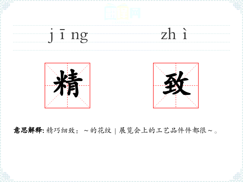 精巧细致:~的花纹|展览会上的工艺品件件都很~。