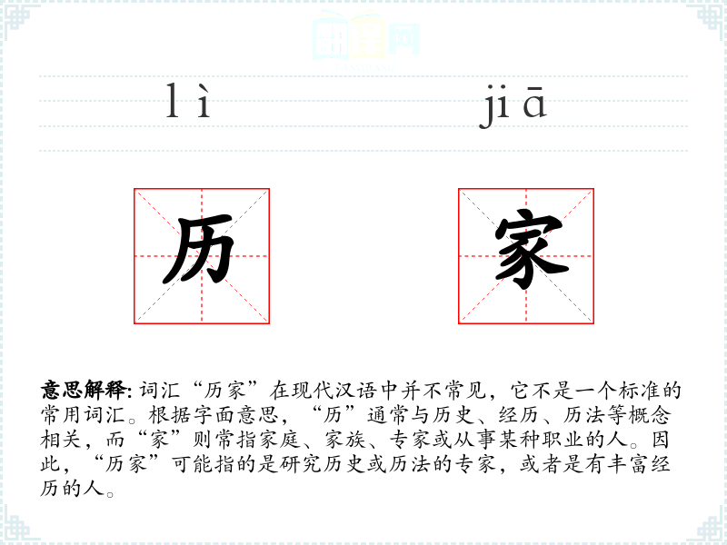 尽管“历家”不是一个常用词汇,但它体现了对历史和历法专家的尊重。在语言学*和表达中,了解这样的词汇可以帮助我们更深入地理解文化和历史的重要性。
