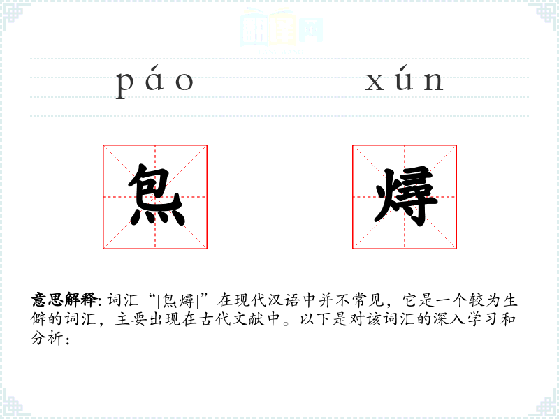 词汇“[炰燖]”在现代汉语中并不常见,它是一个较为生僻的词汇,主要出现在古代文献中。以下是对该词汇的深入学*和分析: