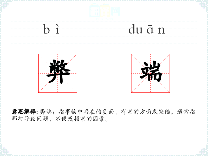 弊端:指事物中存在的负面、有害的方面或缺陷,通常指那些导致问题、不便或损害的因素。